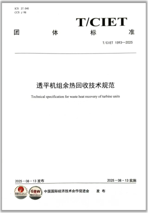 近日,由南京圣诺公司为主要单位起草的团体标准《透平机组余热回收技术规范》(T/CIET 1593—2025)正式发布实施。该标准明确了透平机组余热回收的工艺流程、性能指标、设备规范等方面的技术要求与评价基准,填补了国内在该领域系统性技术标准的空白,为行业技术革新与工程实践提供了重要参考依据。